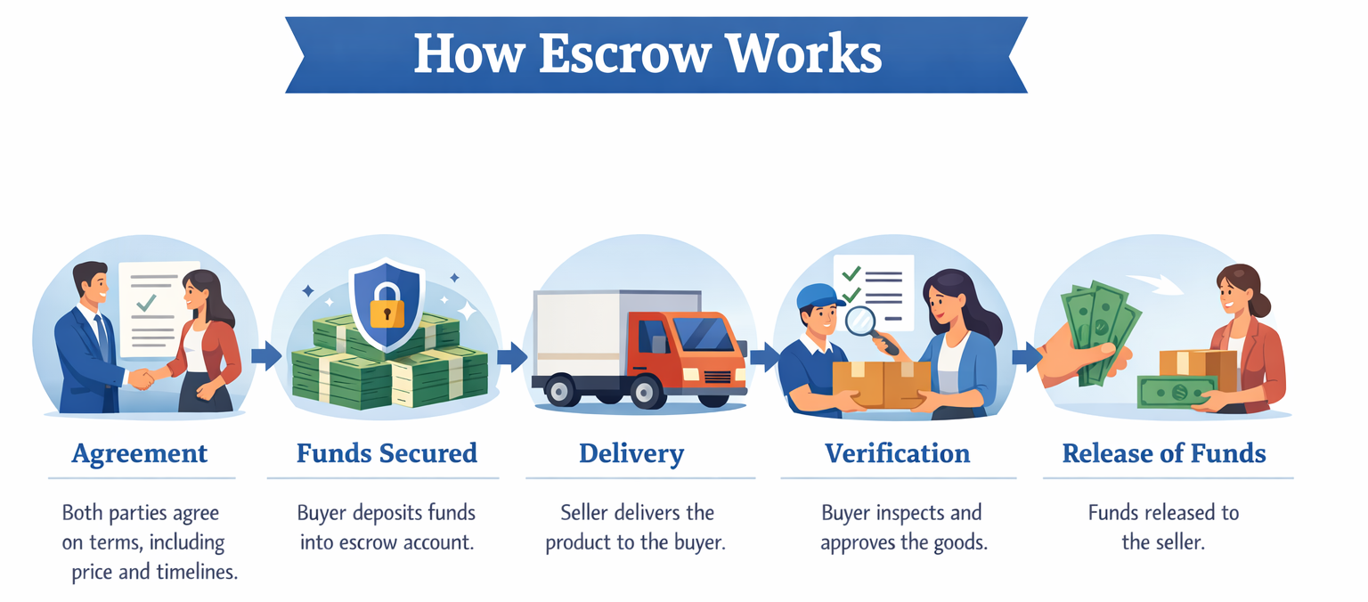 We offer secure escrow services combined with domestic and international shipping. Our escrow service protects both buyers and sellers by holding funds safely until the shipment is delivered and confirmed.